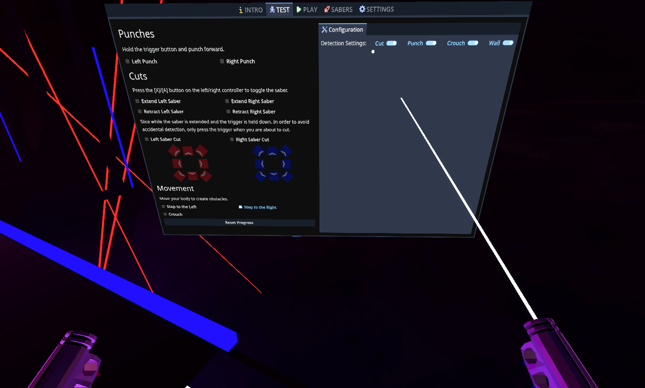 - Play a song in RECORD mode. The game will create cuts, punches and obstacles based on your movement.